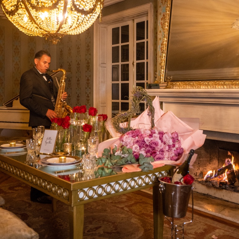Imagine una espectacular Mansión. Dentro de ella, un elegante Salón Barroco con cena romántica privada, mayordomo, músico concertista y un chef ejecutivo cuidarán hasta el último detalle.